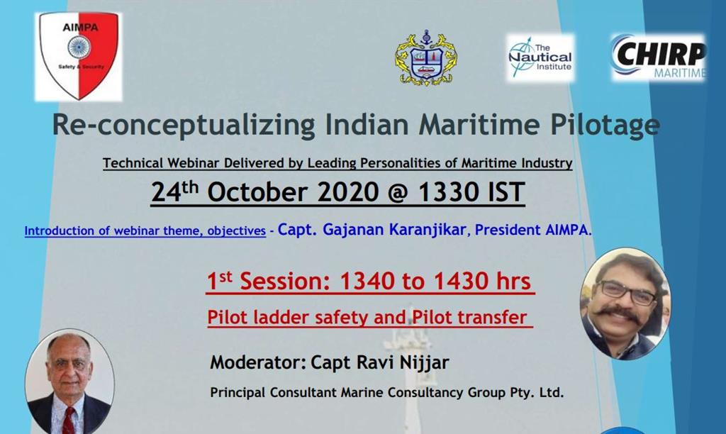 "AIMPA has organised a unique WEBINAR first time ever in India about Indian Pilotage. We understand that this has been long overdue and much needed to revamp the pilotage operations. Benchmarking with the Pilotage done in the era of AI and BIG data our Pilotage is still being operated in past tense. The pilot ladders practices alone are costing industry heavily and yearly 2-3 lives are lost and many injured.We are looking at deliberating pilot ladder issues along with Pilot transfer procedures in ports and Pilot training needs which finally culminate to safety of Navigation in ports. The safety of navigation alone being the major driver for cargo safety and movement, and anything commercial happening in ports worldwide. The safer the ports are , the more efficient and effective they are.