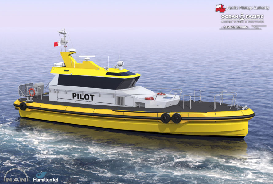 The new vessel will feature Hamilton waterjet propulsion providing a highly manoeuvrable platform for pilotage duties along with protection against damage from log debris, vital to operations in BC. Also installed is a large section Camarc Popsure fender system for protection against boarding impacts during pilotage. When delivered, the new vessel will join the PPA fleet including 4 other Camarc pilot vessels; two 22m boats built in 2000-2003 and subsequently two 19.9m boats built in 2008. Ocean Pacific have worked with the Pacific Pilotage Authority for a number of years on maintenance and refit work on their existing fleet and this order represents a significant step in delivering a new high-tech vessel incorporating the latest in design, build and technology.