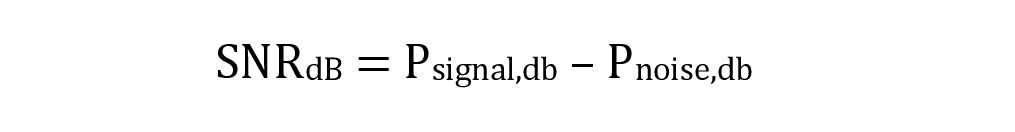 Using the definitions of SNR, signal and noise in decibels, this leads to an important formula for calculating the signal-to-noise ratio in decibels when the signal and noise are also in decibels.
