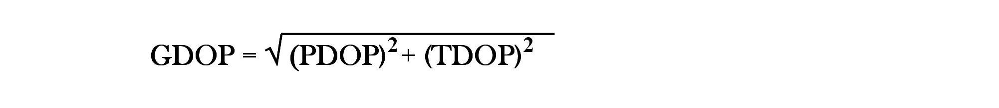 GDOP is the most important DOP value because it represents the error information of the entire system. It results from the position DOP (position error in space) and Time DOP (time offset) and is calculated as follows: