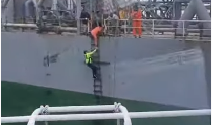 Video: Climbing the pilot ladder, the pilot is hit by Pilot Boat.