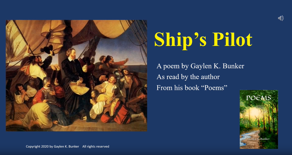 Sometimes it is good just to stop and enjoy a poem. This poem "Ship's Pilot" is read by the author himself.