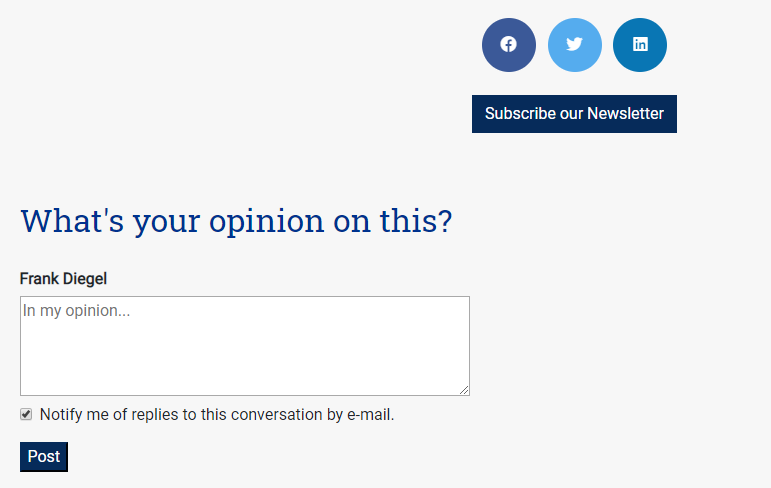 At the end of each article or video you can leave a comment (opinion) as a registered user: