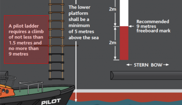 The well known pilot ladder poster is displayed on the bridge of every ship nowadays. Often another copy of the poster is displayed at the pilot boarding point. Crews rather use this poster to install the pilot boarding arrangement than reading another set of rules and regulations, after all a picture tells us more than a 1000 words.