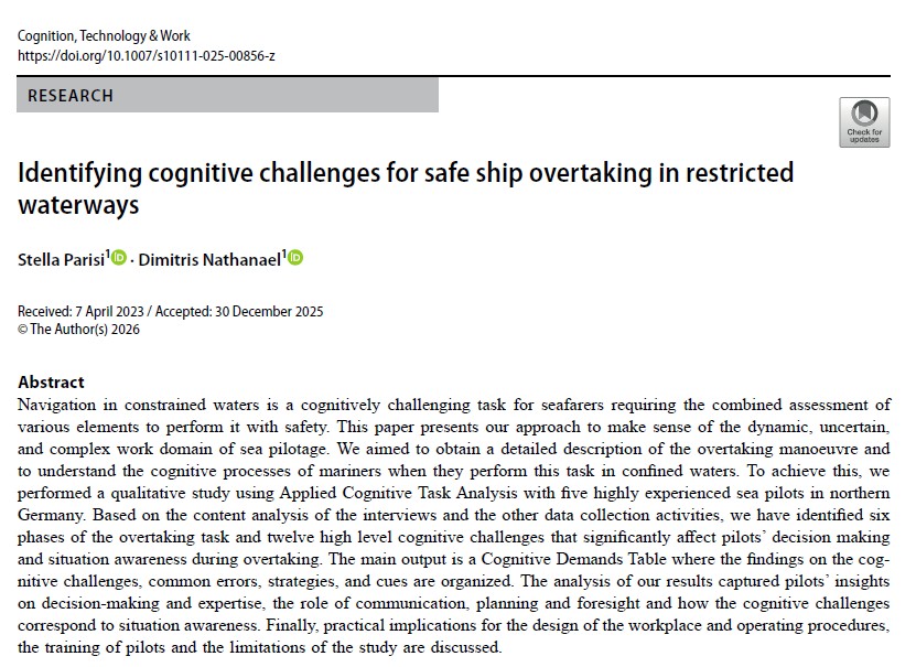 Study: Identifying cognitive challenges for safe ship overtaking in restricted