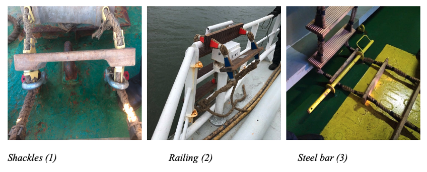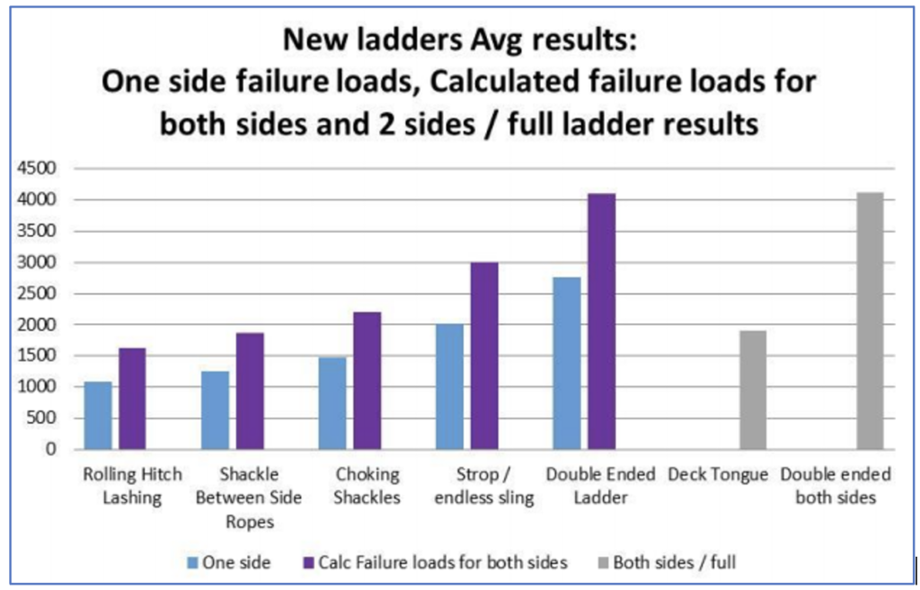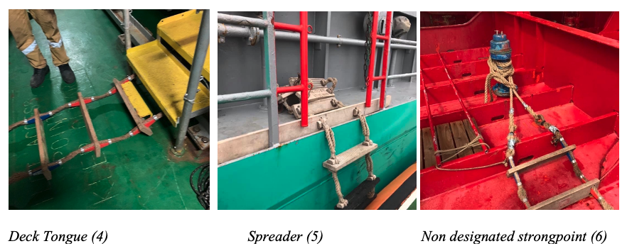 It has been shown that a majority (51%) of pilot ladders is secured by means of D-shackles, when secured at intermediate length. Previous research (Evans, 2020) has proven that this method has only about 50% of the strength of the pilot ladder when secured at full length (“double ended ladder”), or by means of the “endless-sling” method.The rolling hitch knot is used in 31% of the observations. When used correctly, this method is rated at only 39% of the strength of the ladder when secured at full length (“double ended ladder”), or by means of the “endless-sling” method.