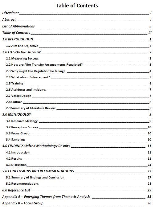 Although the boarding and landing of pilots is regulated, there are a high volume of non-compliant transfer arrangements throughout the industry. With that in mind, I have conducted much needed industry research into the issues surrounding non-compliance - Please see attached research paper.I would like to thank my colleagues Kevin Vallance, Arie Palmers and John Pearn.