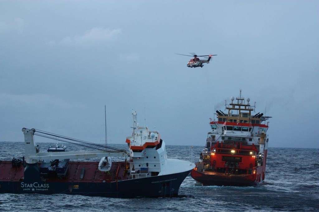 The Norwegian Coastal Administration mobilized according to their contingency plan against acute pollution, salvage crews managed to get on board the drifting vessel Eemslift Hendrika and managed to connect it to the two tugboats, and the vessel is now being towed to harbour in Ålesund.After a successful operation the vessel Eemslift Hendrika is now being towed to the port of Ålesund. Conditions changed during the afternoon and evening, and NCA were worried that the vessel would not follow the expected course on which the original plan was based. NCA therefore launched a governmental run operation, so they could have the opportunity to tow the vessel. At the same time, a worst-case scenario has been prepared with get a grounding, says director for preparedness against acute pollution, Hans-Petter Mortensholm.