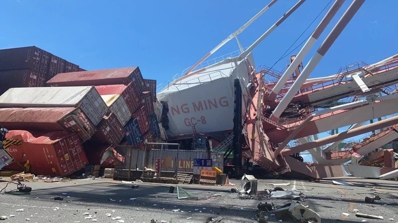 Video surfaced on social media in Taiwan showing a dramatic container crane collapsing and dock workers running for their lives at the Port of Kaohsiung:
