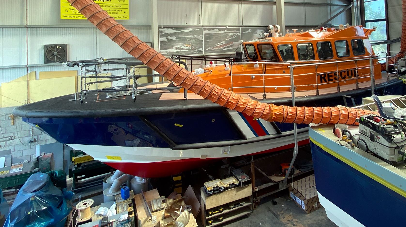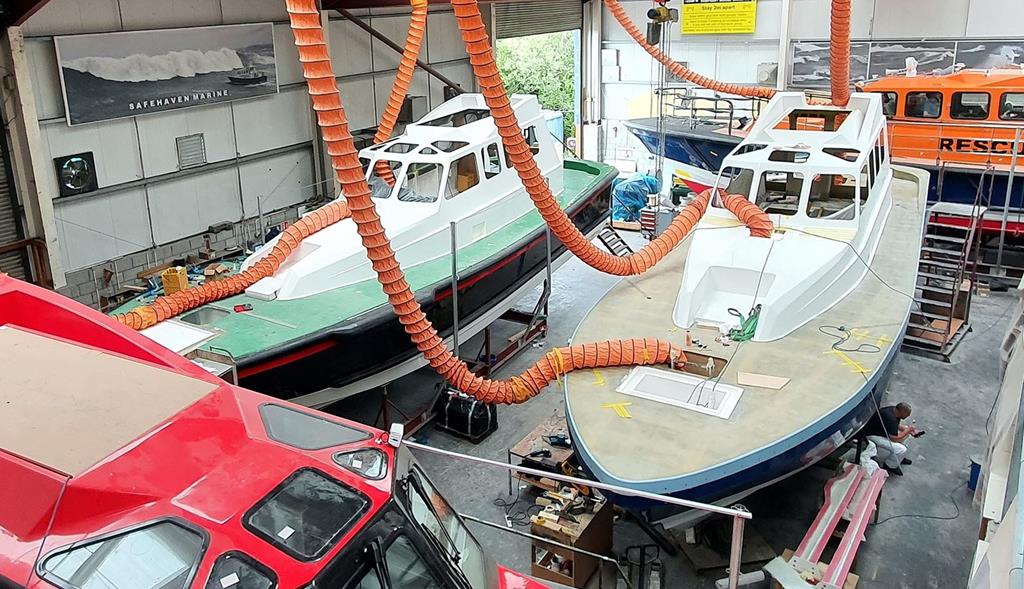 The second Waterford, Sines and Cromarty Firth Pilot Boats 48 are under construction at the main factory, as well as the Faroe Islands Interceptor 48, which is due to be launched next week (see photo).