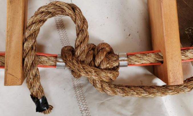 * If a ladder requires a third replacement step, it shall be rebuilt. A ladder constructed with spun-polyester side ropes, with the inner core showing at any place throughout the length of the ladder is no longer serviceable. Such ladders shall be rebuilt according to the original manufacturer’s standard, using new side ropes, and using undamaged steps in place of all damaged steps and replacement steps.
