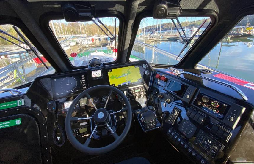 Designed and built in compliance to Bureau Veritas class rules, Celso Madeira has an LOA of 14.9 metres, a moulded beam of 4.1 metres, a draught of 1.35 metres, a lightship displacement of 17.5 tonnes, and shock-mitigating seating for up to five pilots and two crew.