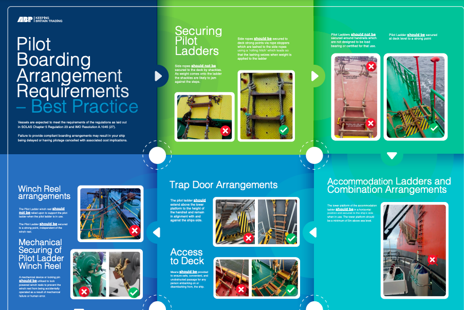 It is imperative that the pilot ladder is supervised by a qualified officer when in use, ready to take action if things go wrong. The ABP poster (see below, click to enlarge) is an excellent guide as to what is acceptable and what is not.