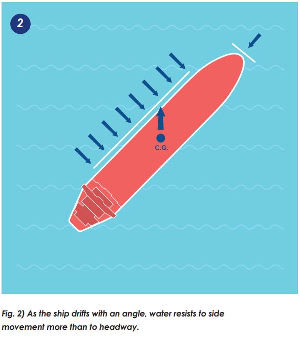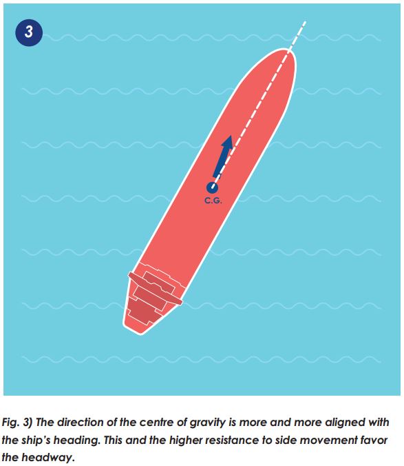 Usually, the reason to publish a technical essay is twofold. First you want to share findings with your peers. You hope that the ideas can be discussed and validated, that the added knowledge might one day play a part in improved professional acts. Secondly, you are seeking a date stamp, proving that you have expressed your ideas at a given moment. There is no patent for theories. The only retribution they bring is the recognition of authorship. If someone pretends that he or she figured it out before you, the burden of proof is on them and the date of issue of an article is a solid argument to back your position. My wife suggested a third reason to publish that was vaguely rhyming with self-glorification. I skilfully deflected that observation by telling her how beautiful she was and how I intended to wash the dishes and do the laundry for the rest of the month.These thoughts are sure to wake the butterflies in the stomach, but the preparation of a technical demonstration remains a hrill. So, I’ll give it a go, and try to shed a different light on a ship handling phenomenon: why the use of bow thruster can ause ships to gain headway?