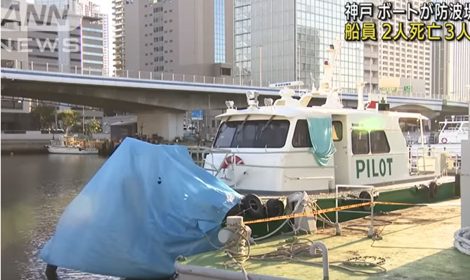 2 people died and 3 were injured when a pilot boat crashed into the breakwater off the Japanese city of Kobe.