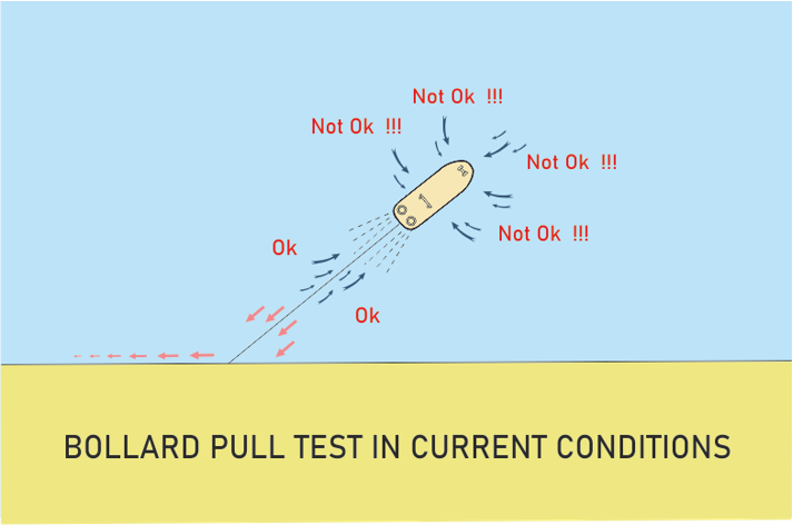 - There should be no significant current at the location where the bollard pull test will be performed. If the current in the region is above 1 knot, it will not be possible to obtain a healthy measurement value .
