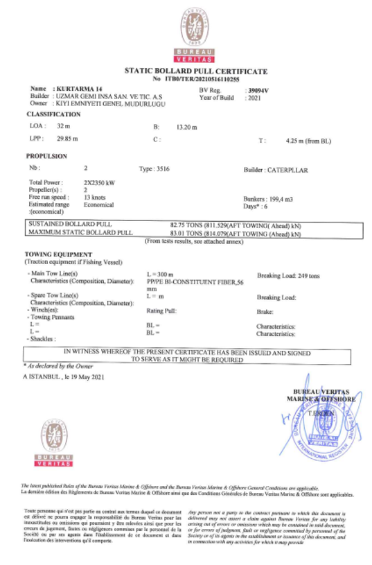 Bollard pull tests are done under the supervision of class Institutions. It is essential to ensure that the bollard pull test protocols are followed appropriately since this value is crucial to the marketing of the tug: