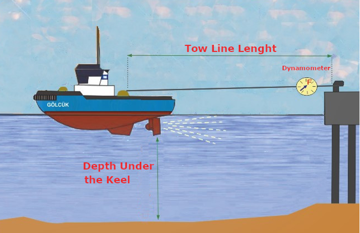Besides, the position of the tugboat while performing the bollard pull test should not be in a very shallow water depth.
