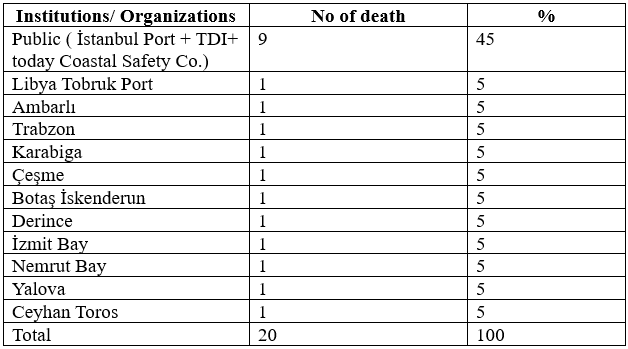 Table-3 Below shows the age range, number, and percentage of death:The graduated school is 80% Turkish Merchant Maritime Academy (TMMA, today İstanbul Technical University Maritime Faculty). Due to the difficulty in obtaining pilots in Turkey before the 70s, pilots were recruited from graduates of other schools.