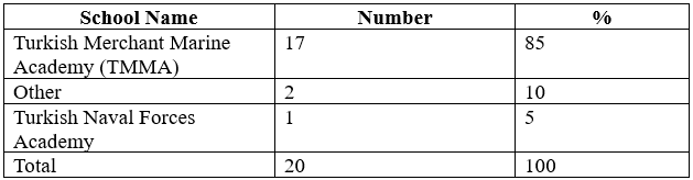 Graduated schools are shown in Table-4 below:Pilots who died before 1996 due to the privatization of pilotage in Turkey (except Tobruk Port – Capt. Erdoğan Baykal) are public pilots. In the institution/organization where the deceased work, the public company has the highest density (50%)