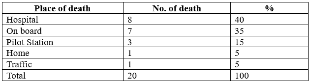 Among the causes of death, heart-related diseases come first with 8 deaths. Other diseases come second with 6 deaths, and pilot ladder accidents come third with 4 deaths. In the fourth and last place, one death each comes because of traffic accident and fire/explosion on board.