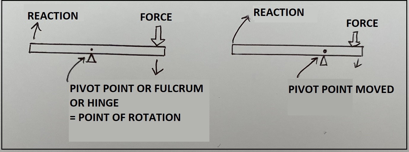 Archimedes ‘Lever theory’: A bar balanced on a pivot, the fulcrum. The fulcrum is the point where the lever turns or the rotation point. The effect of the lever depends on how much force is applied and where the force is in terms of distance from the ‘pivot point’. A lever can amplify force.