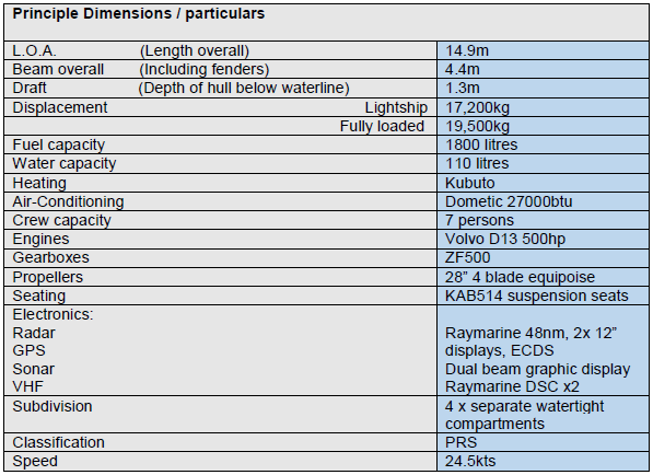 ‘Pilot 1’ is powered by a pair of Volvo D13 engines and has a 24.5kts operational speed. She has been