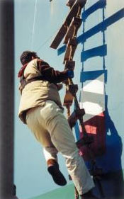 3. The pilot secures himself to the safety wire/ harness lowered from the ships deck. He does NOT secure himself to the platform.