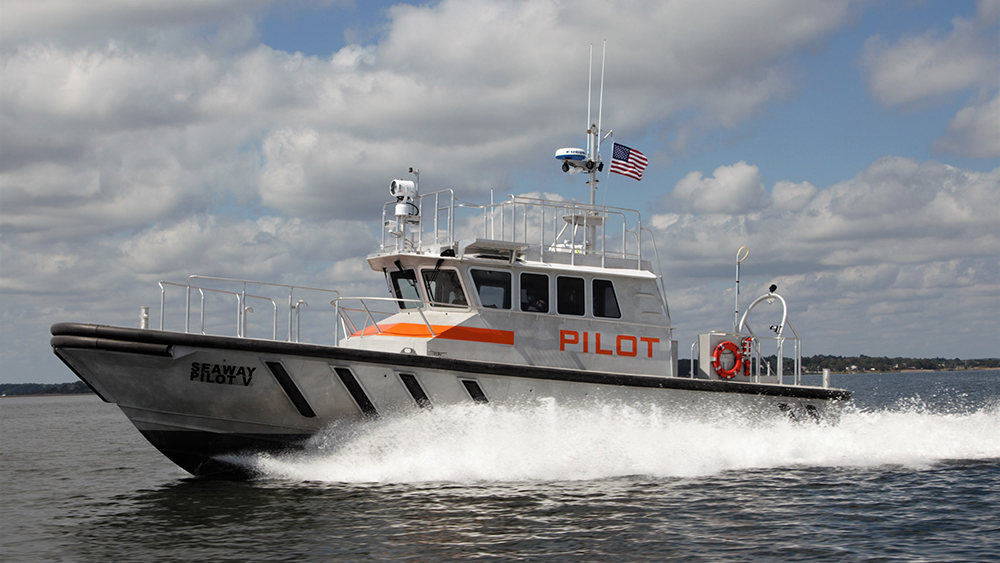 With a length overall of 53.6’, a beam of 17.8’ and a draft of 4.8’, the all-aluminum pilot boat features the Ray Hunt Designs Deep V hull. It is powered by twin Volvo Penta D16, EPA Tier 3-compliant diesel engines, each delivering 641Bhp at 1800 rpm and a top speed of 23 knots. A Humphree interceptor trim-tab control system, with Automatic Trim Optimization is installed at the transom. Diesel capacity is 800 gallons, which shipyard officials said will provide a range of at least 300 miles at an economical speed of about 20 knots.