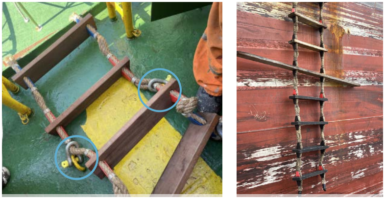 - 25% - were because shackles rather than rolling hitches were used to secure the pilot ladder side ropes (Figure 2)