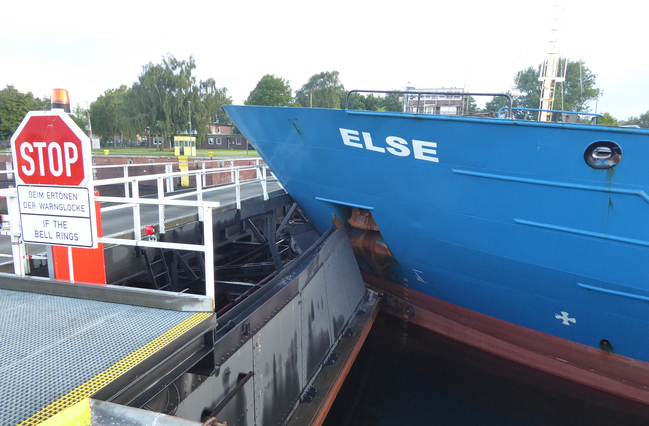 On 29.08.2020 at approx. 05:10 hrs the freighter "Else" entered the fjord-side lock gate of the northern chamber of the big lock in Kiel-Holtenau without any brakes.