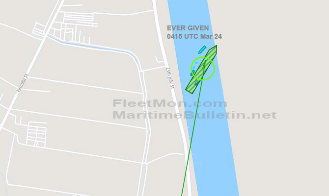 Giant Container Ship EVER GIVEN grounded and blocked Suez canal AIS data shows the MV Ever Given is stuck sideways within the canal, preventing ships from passing in either direction,Several tugs have been on scene for several hours working to dislodge the ship ,An ultra-large containership is aground and blocking ship traffic in the Suez Canal